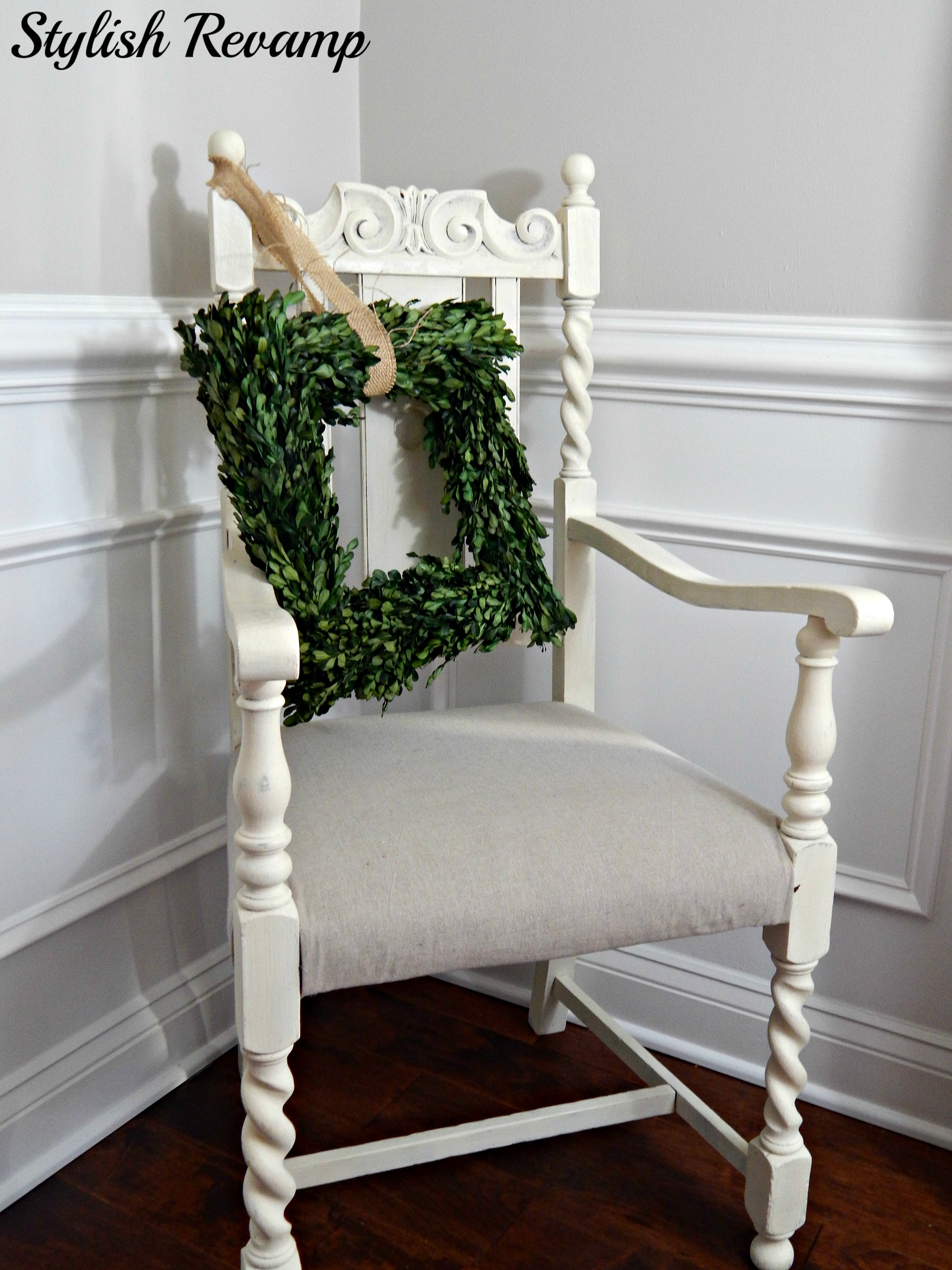 I orginally shared these two chairs here. I am so glad I painted them. I just have them placed in the corners of the dining room for extra seating, plus I just like the way they look now! I love the drop cloth seats.