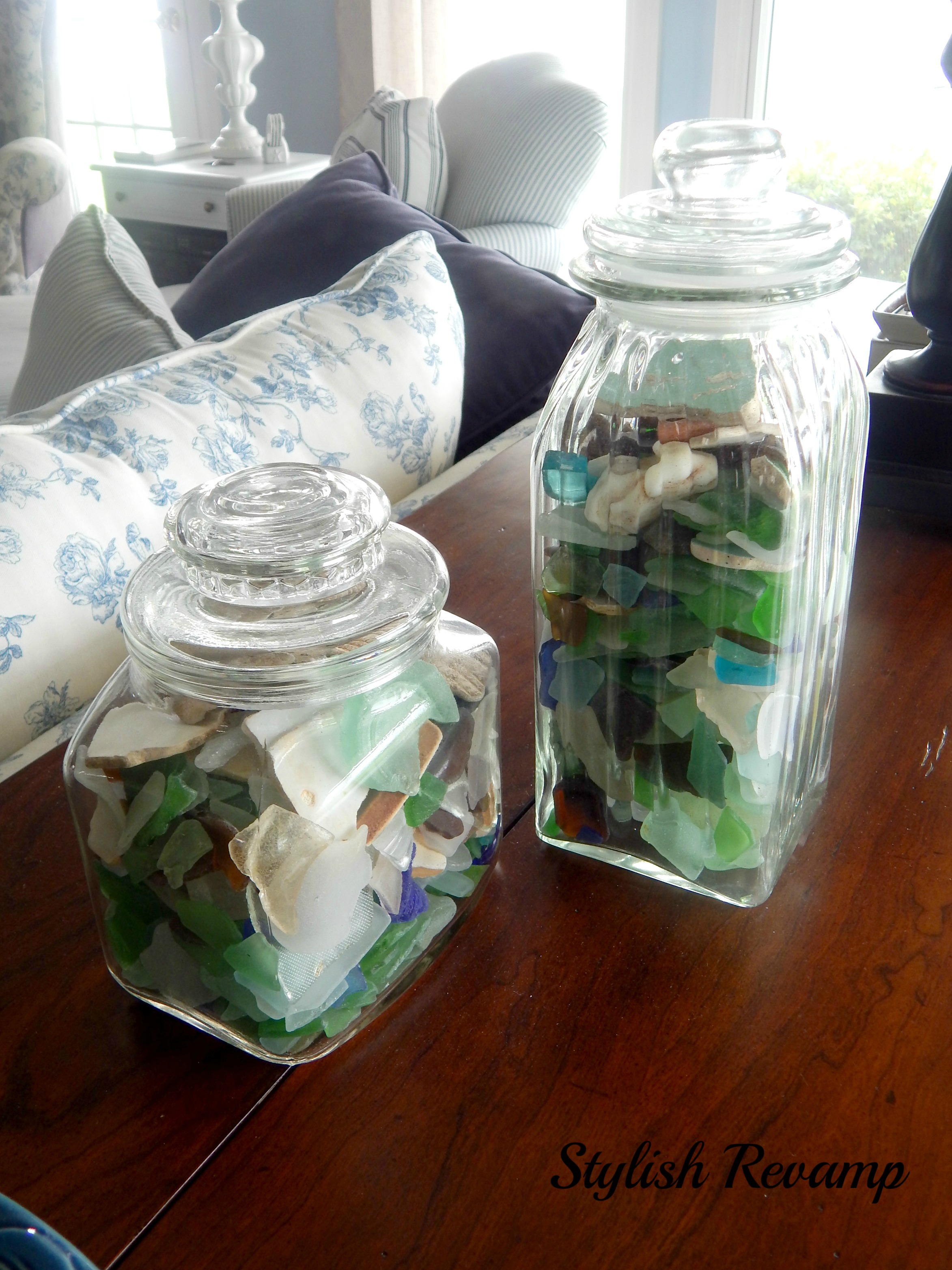 I have shared my sea glass before but I wanted to show you some more of the vessels that I use for the sea glass.