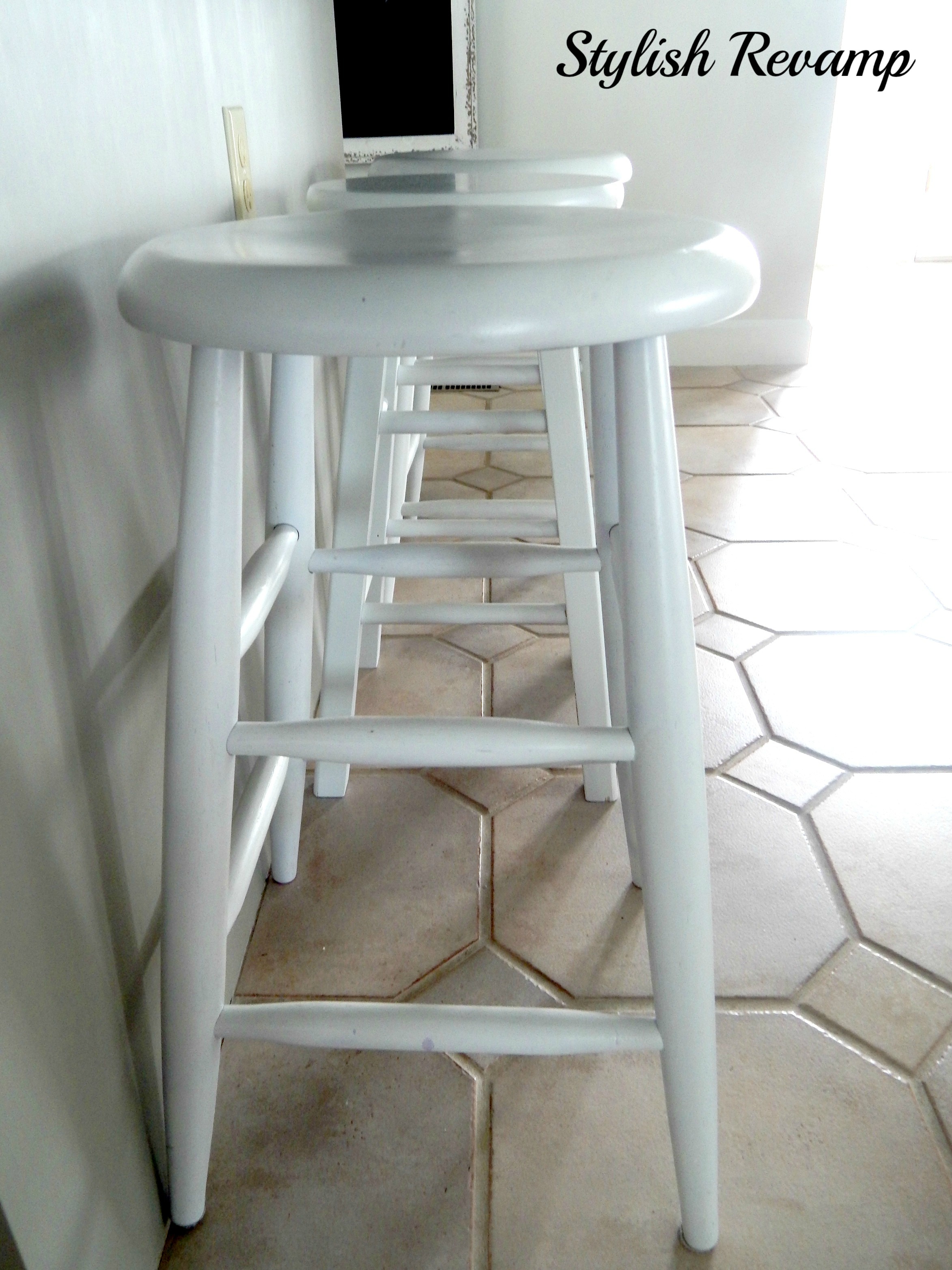 I found these at an antique store. They are solid little stools and I like that I can tuck them under the counter and out of the way. You can find similar stools at Target. However, the seats on the stools I found at the antique shop are thicker and they have a bit of a curve to them instead of a flat seat. All I did to them was spray them white and they have held up very well to all the wear and tear they receive. This is a favorite spot for an Island breakfast of waffles with blueberry syrup.